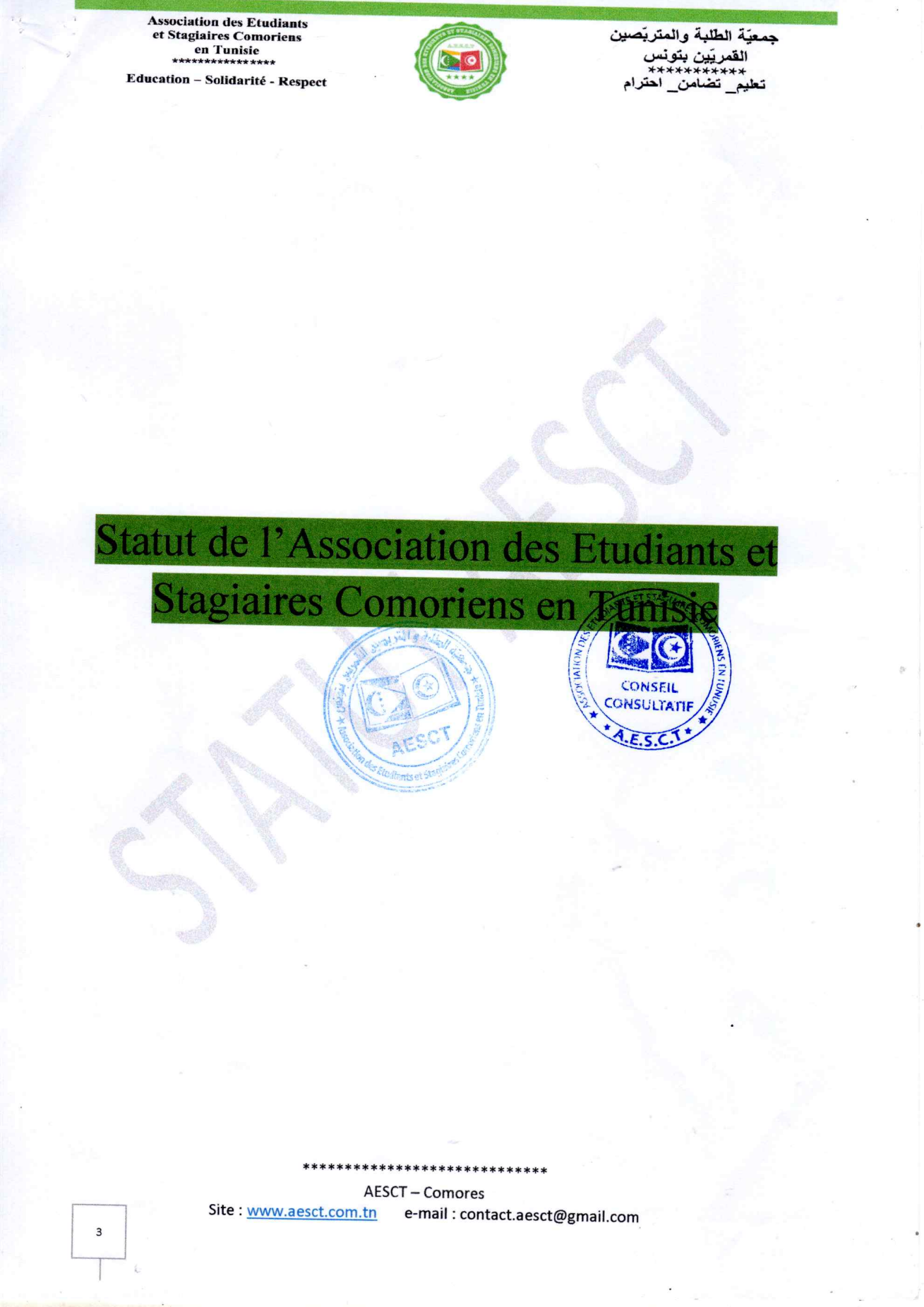 Statuts et règlement intérieur AESCT