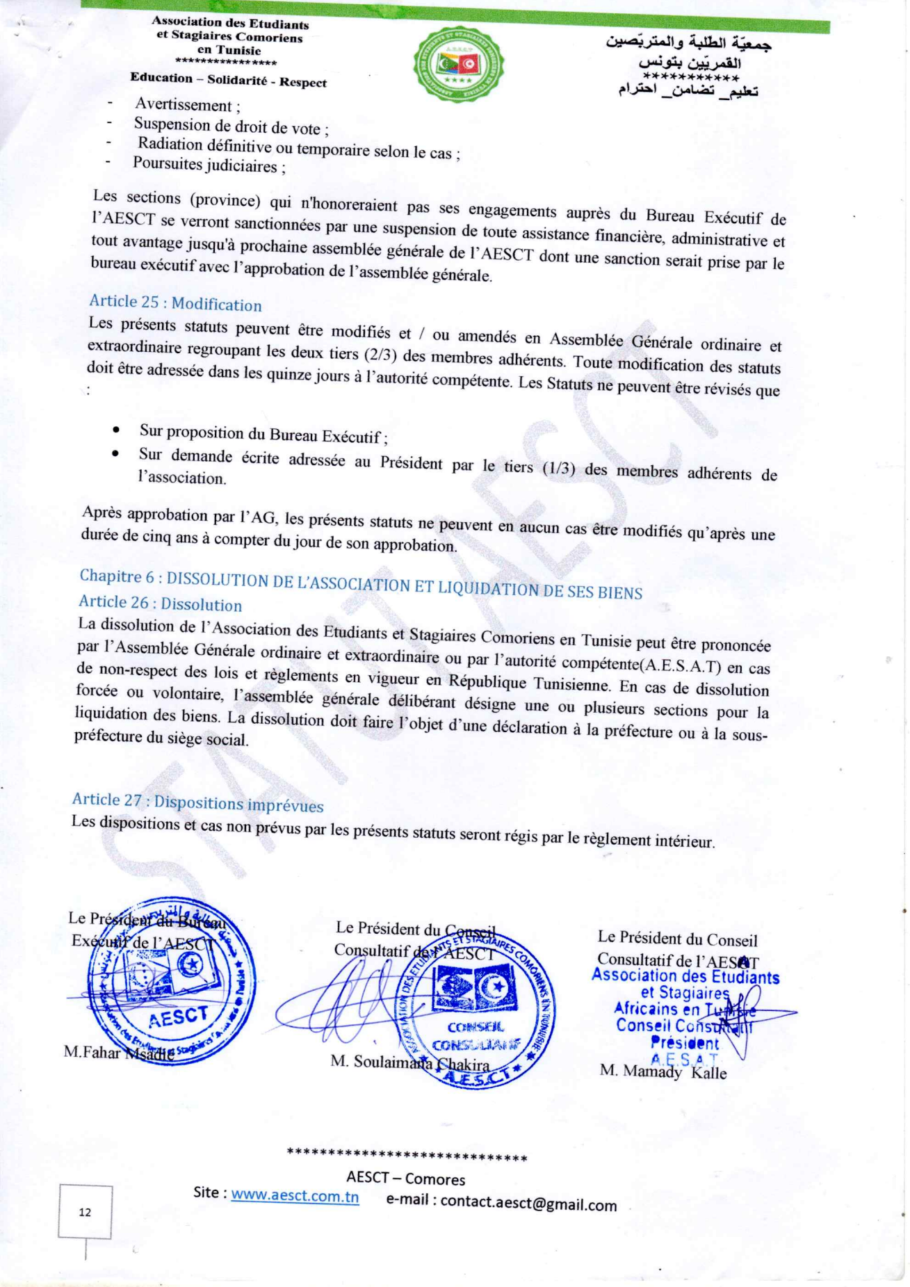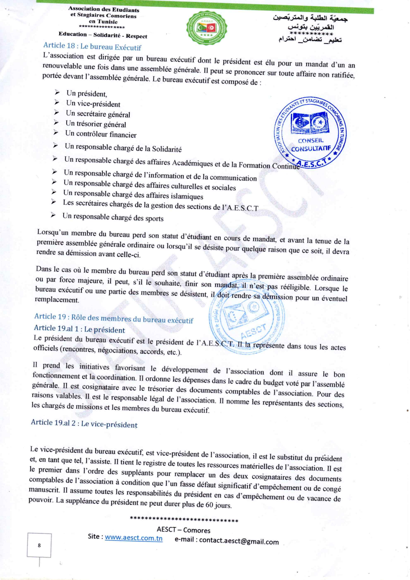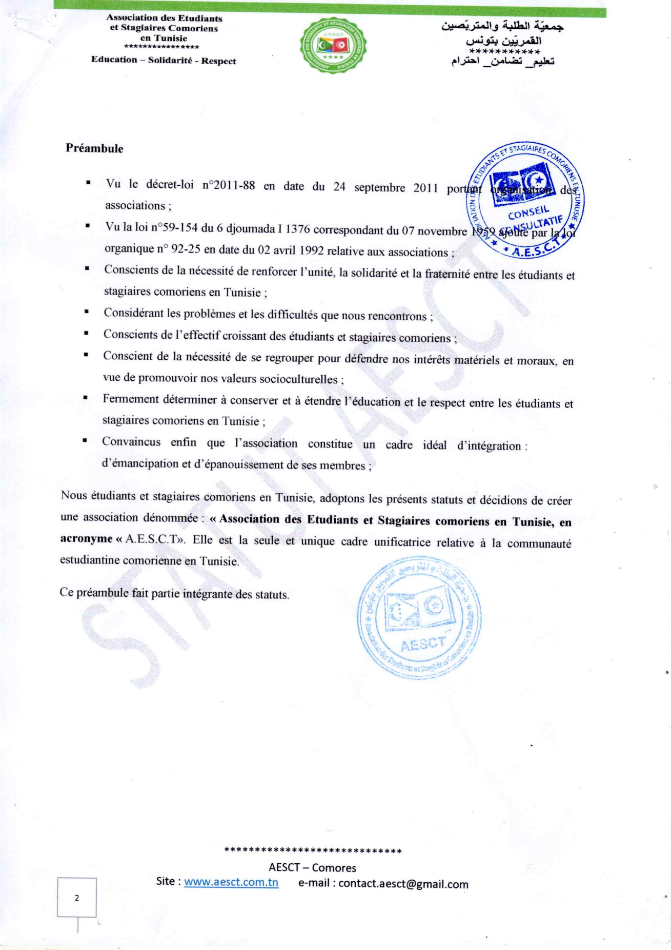 Statuts et règlement intérieur AESCT